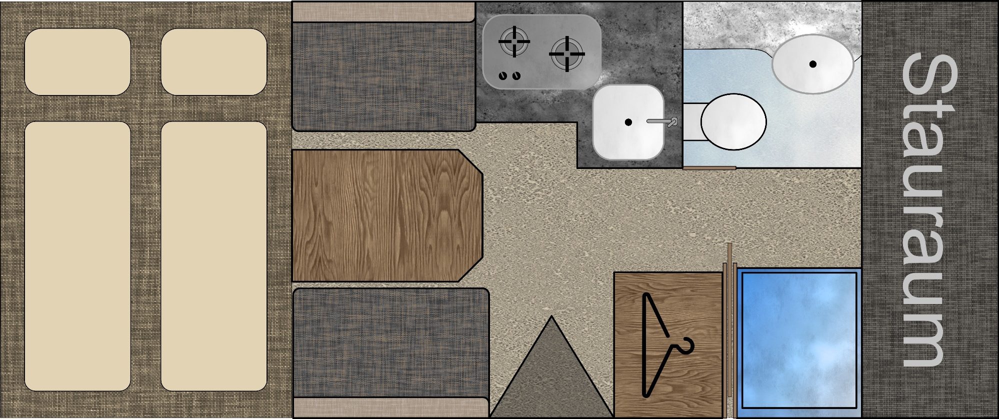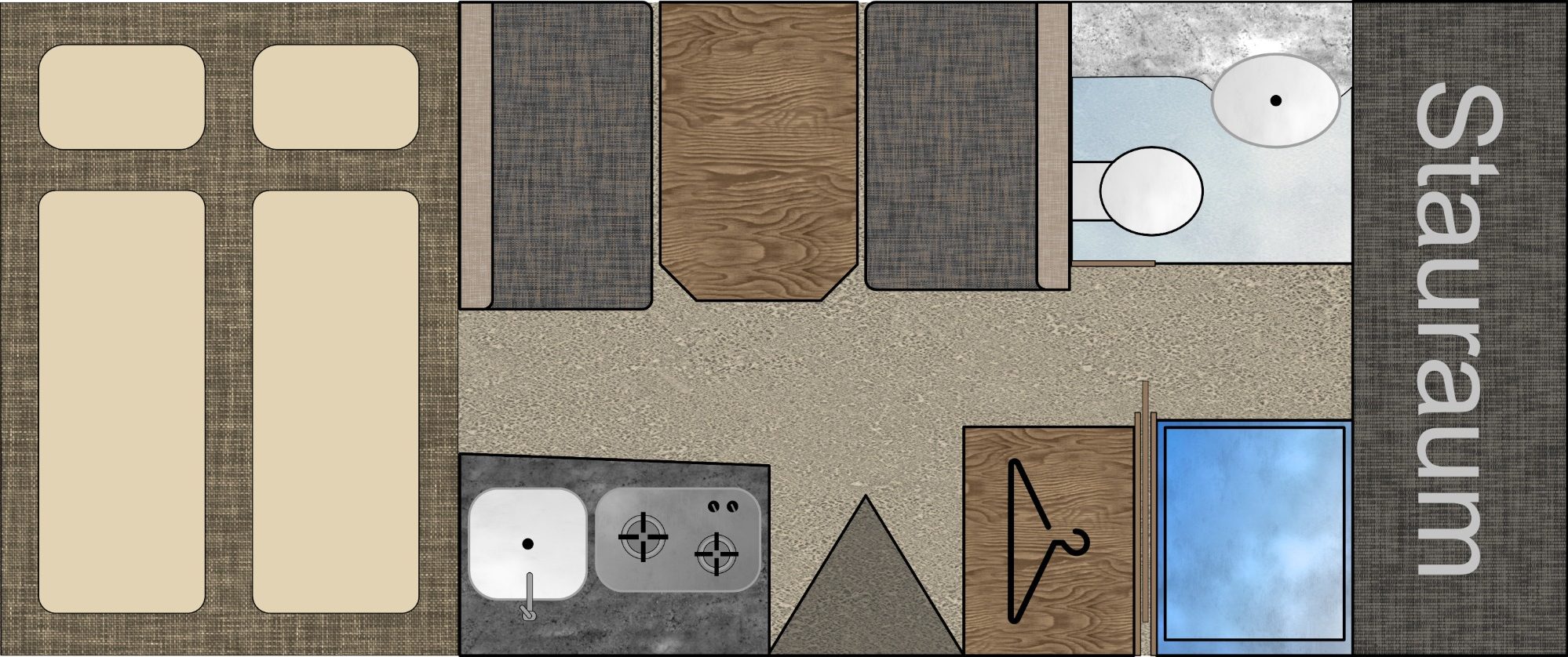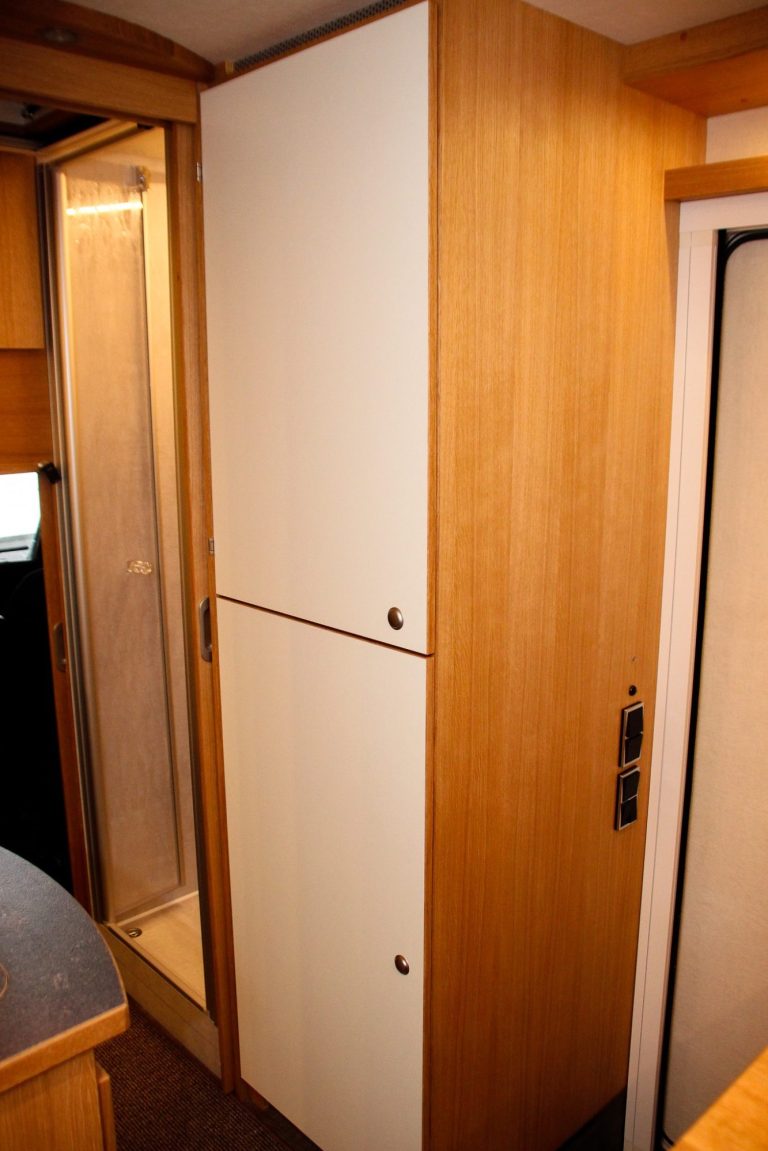 Direkt darunter befindet sich der Kleiderschrank.