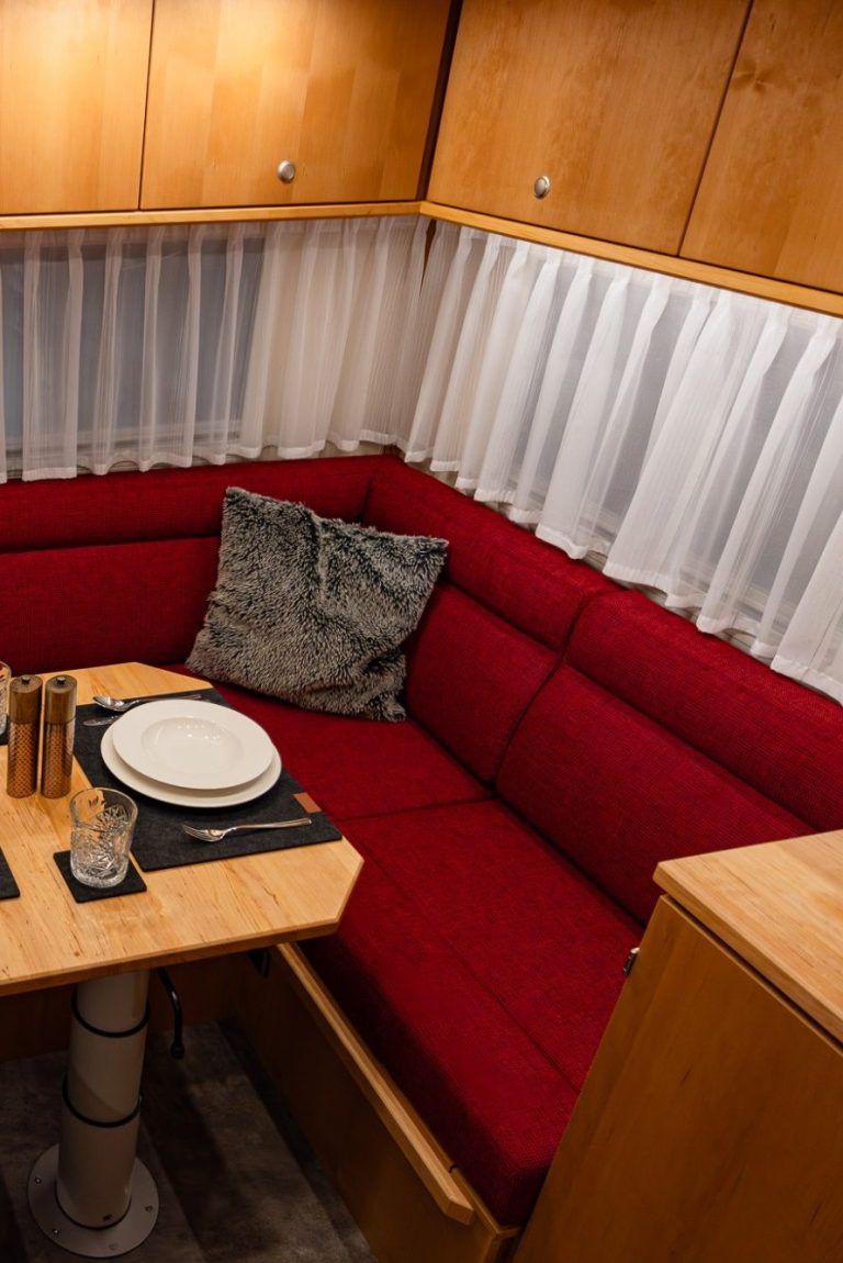 Die große Rundsitzgruppe im Heck bietet Platz für lange Abende und schöne Gespräche. Drei Fenster, optionales Heki und warmes Echtholz schaffen ein Wohnambiente, das sich sofort vertraut anfühlt.