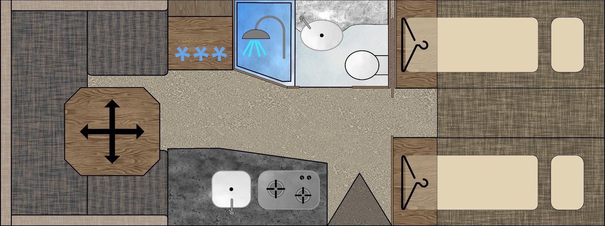 Seitenbad mit separater Dusche, Waschbecken in Haushaltsqualität und Trockentrenntoilette mit SOG-Entlüftung bietet Komfort wie zuhause. Frostsichere Tanks und ALDE-Warmwassertechnik sichern dieses Gefühl das ganze Jahr.