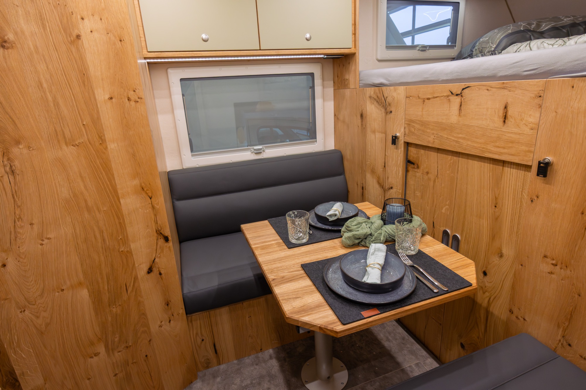 Granit steht nicht zufällig für dieses Modell. Es steht für das, was bleibt — wenn Zeit und Witterung ihre Spuren hinterlassen, wenn andere Fahrzeuge längst aufgegeben haben. Die Weltkarte, die den Aufbau ziert, ist kein Dekor. Sie ist ein Versprechen: Explore the World.
